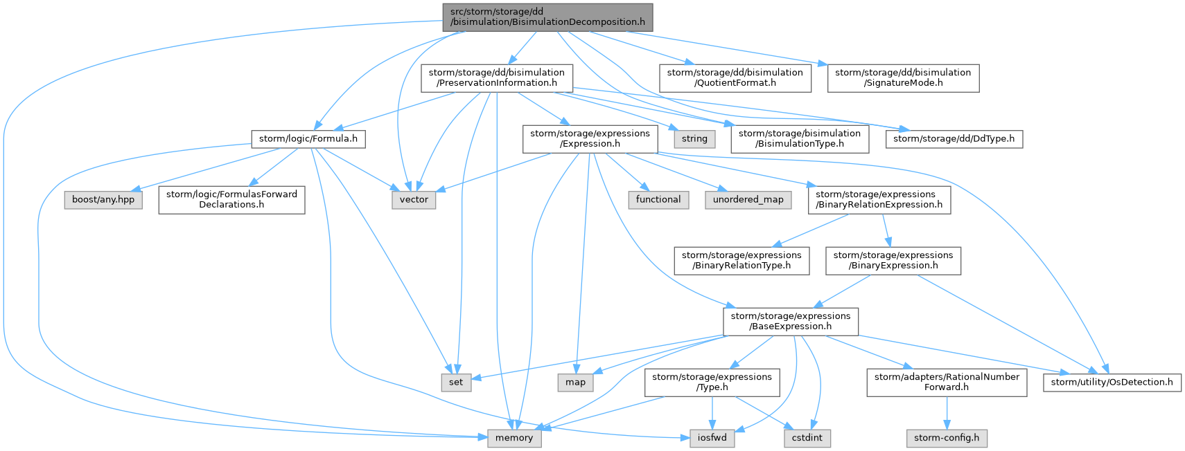 #include <memory>#include <vector>#include "storm/logic/Formula.h"#include "storm/storage/bisimulation/BisimulationType.h"#include "storm/storage/dd/DdType.h"#include "storm/storage/dd/bisimulation/PreservationInformation.h"#include "storm/storage/dd/bisimulation/QuotientFormat.h"#include "storm/storage/dd/bisimulation/SignatureMode.h"